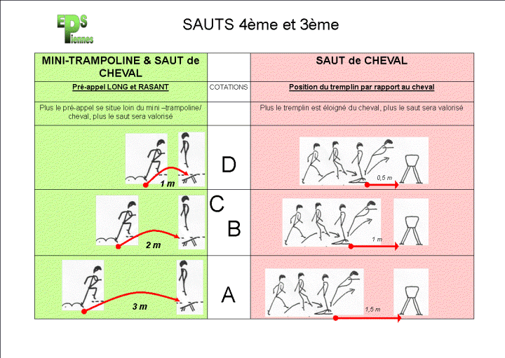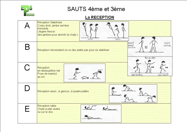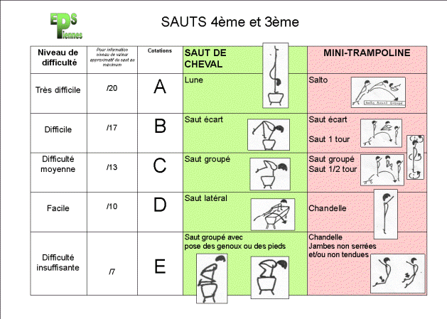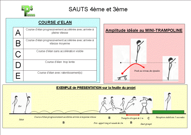 En 3ème les cotations détaillant chaque phase des sauts que l’on trouve dans les dossiers doivent être utilisés par les élèves.