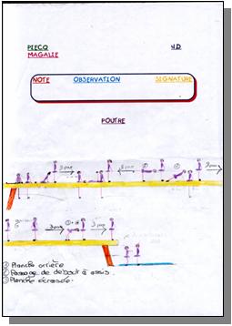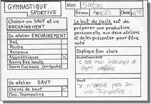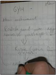 · Se munir d’un cahier de brouillon pour noter au fur et à mesure ce que je suis capable de faire. Ces notes m’aideront à construire plus facilement mon enchaînement et mes sauts. Elles permettront de garder une trace de mon travail d'une semaine à l'autre. C'est à partir de ce brouillon que l'élève ecrira ses documents finaux.