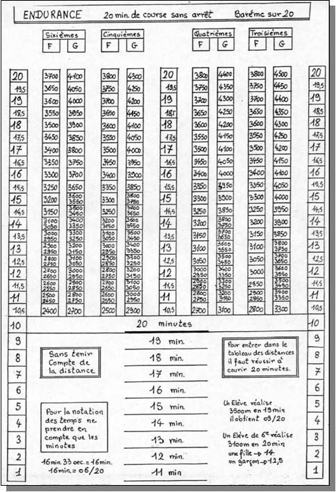 c) pour avoir plus de 10, un élève doit donc courir 20 min mais aussi réaliser une performance distance.