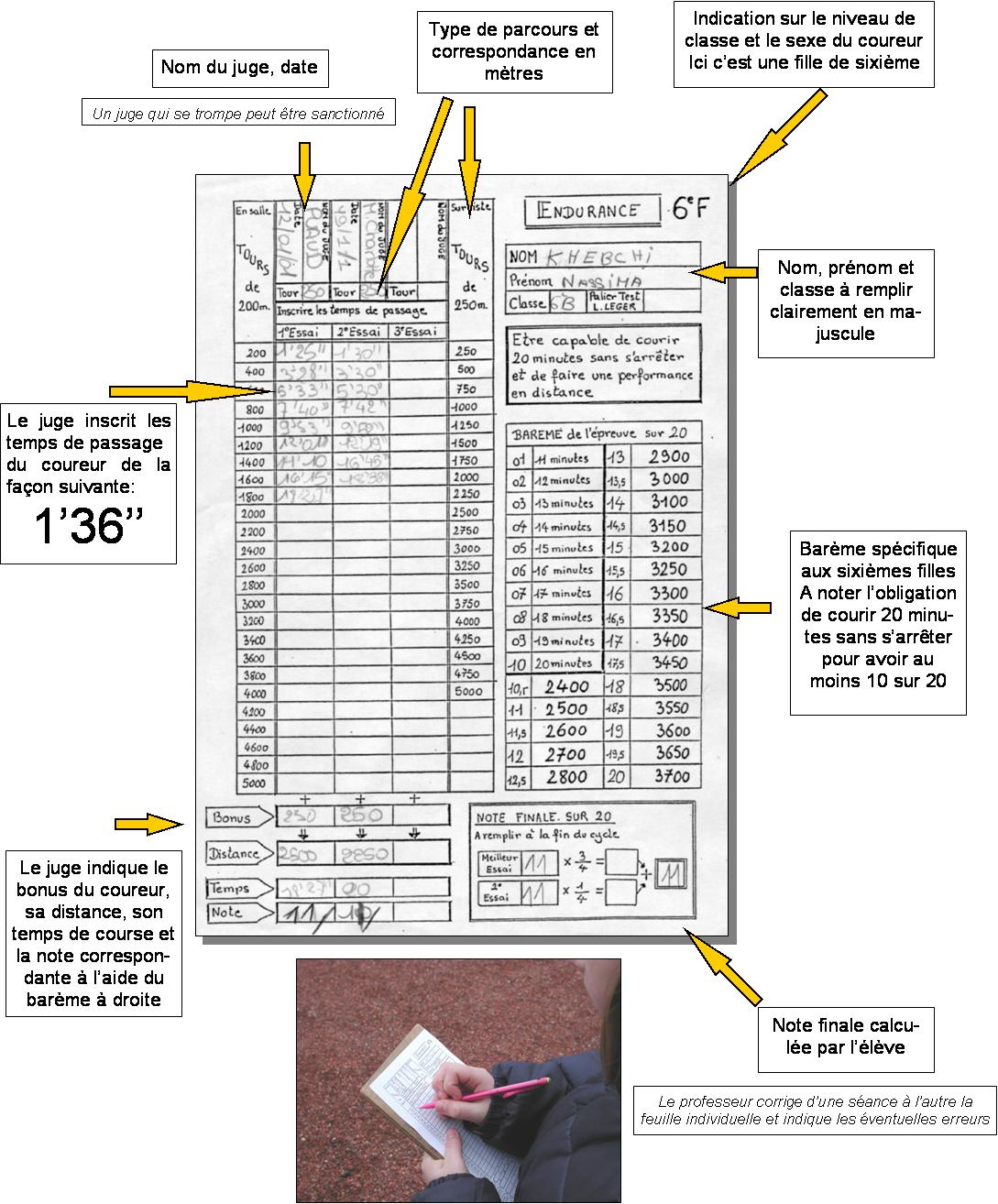 - Les juges écriront sur les feuilles les temps de passage de leurs camarades. Ces temps de passage seront annoncés par le professeur