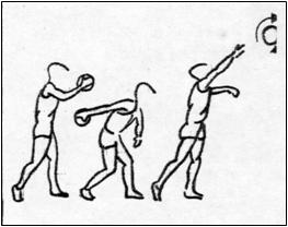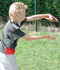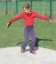 EC de balancer d’avant en arrière ( prise d’élan ) et de venir placer le disque dans la main gauche ( main droite toujours au dessus du disque )