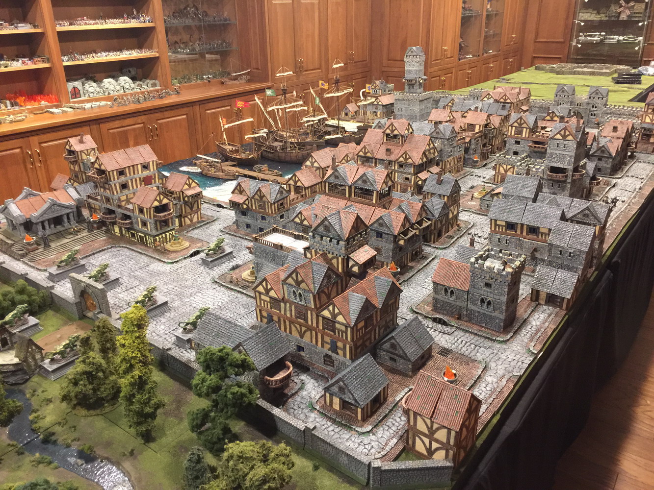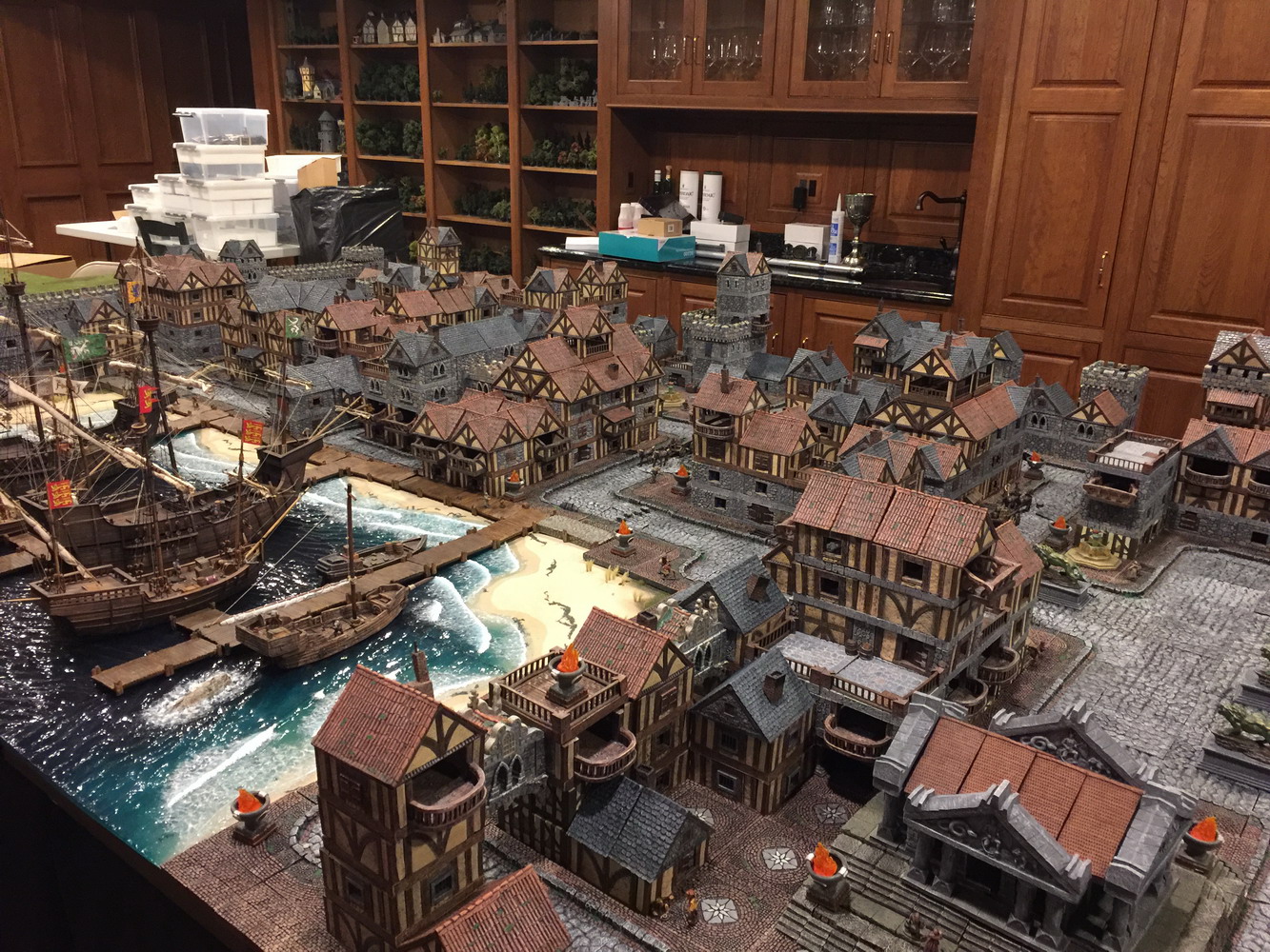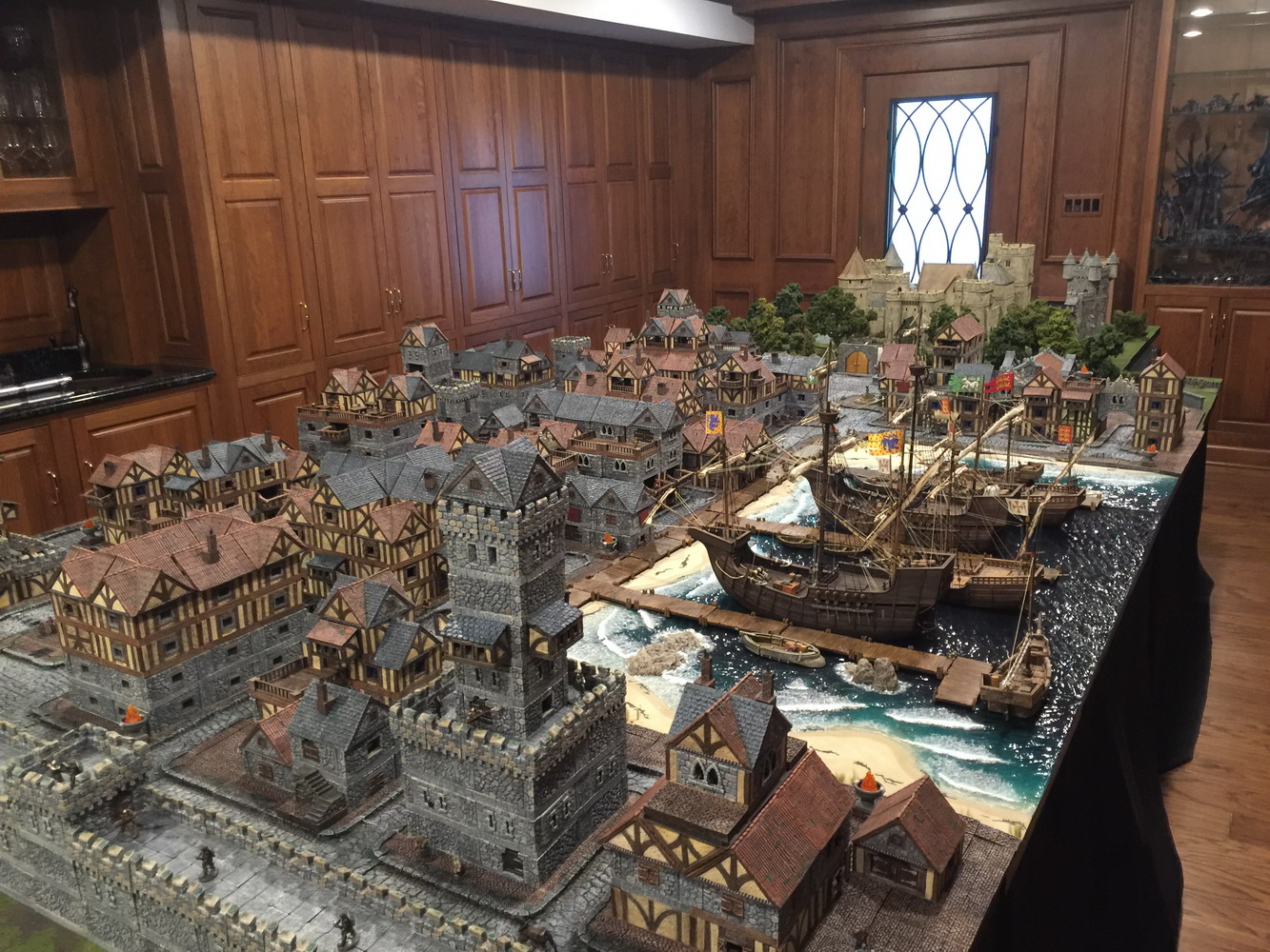 -(2016 juin) Sorn vient de publier les photos de sa nouvelle table composée de sa nouvelle commande de City Builder System. Une fois de plus il est le seul à pouvoir nous donner l'occasion de voir ce que Dwarven Forge peut donner à grande échelle. Nous autre commun des mortels, nous pourrions investir 2000$ et obtenir un petit coin de la table ci dessous. Sorn, lui est capable de voir plus grand et nous offre près de 10m² de cité médiévale. Croyez moi, il faut des sous, mais aussi beaucoup de temps et d'essais pour obtenir un rendu final aussi abouti.