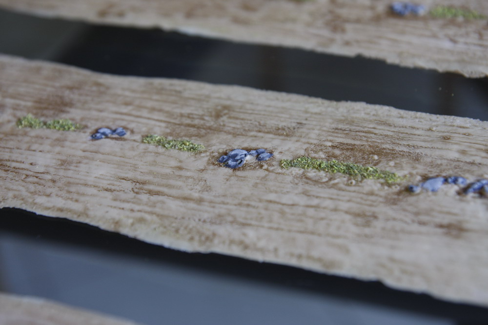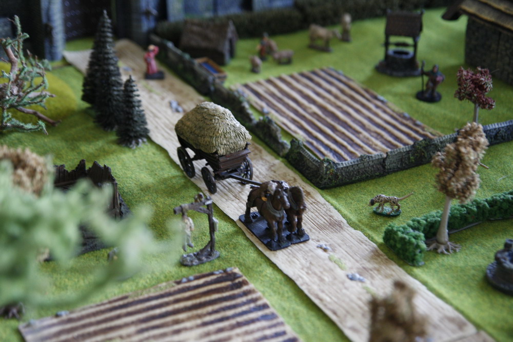 Des reliefs donnent du réalisme avec cailloux, herbes et traces de chariot