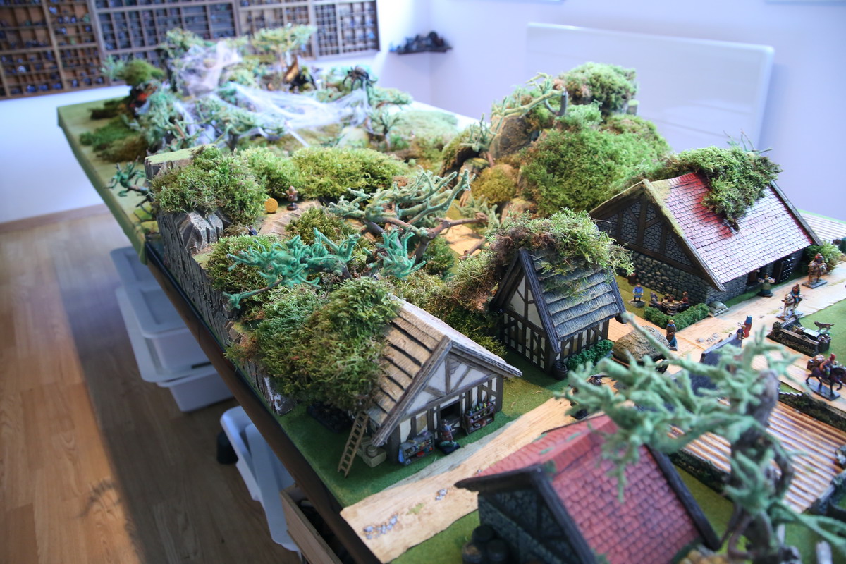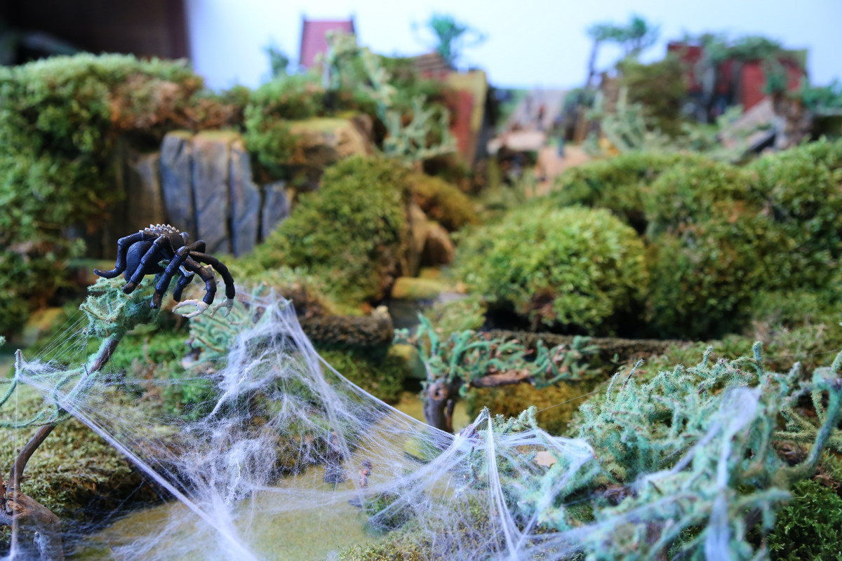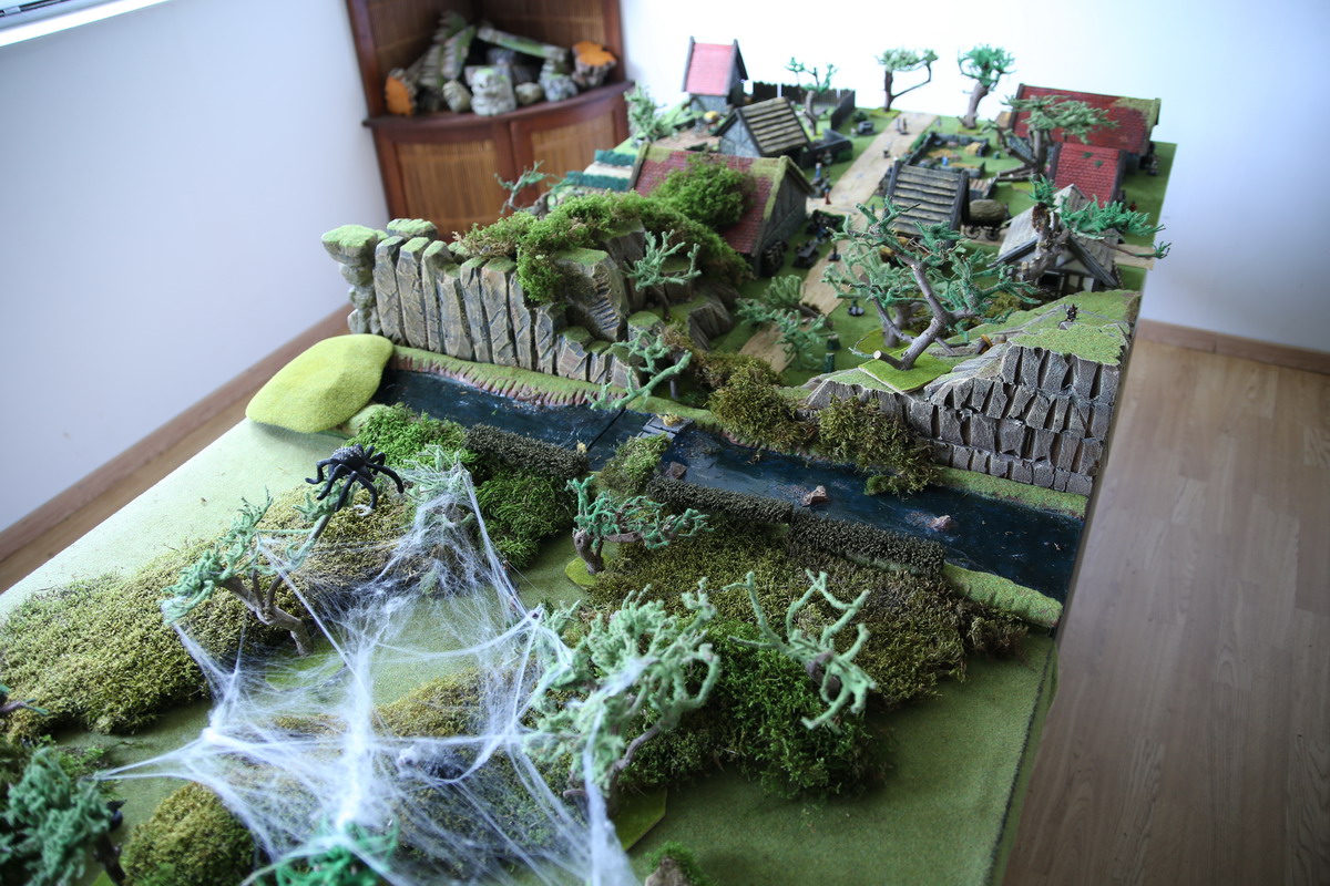 Ce village qui borde la forêt se fait envahir progressivement par la végétation. Le chemin qui y mène passe une rivière. De l'autre coté le village voisin s'est fait happé par les arbres et les broussailles. Une reine araignée y a élu domicile.