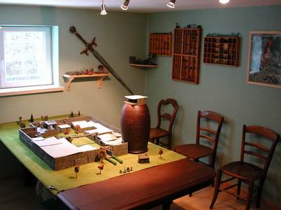En perpétuel quête pour améliorer la jouabilité de mes parties, j'ai donc décidé d'investir dans de superbes décors peints représentant des souterrains et des cavernes. Aujourd'hui, je dispose d'un "puzzle" conséquent. Quand l'ensemble des éléments est emboîté sur la table cela représente environ 3m². C'est à dire que pas une table de salon classique n'est capable d'accueillir tant de décors.