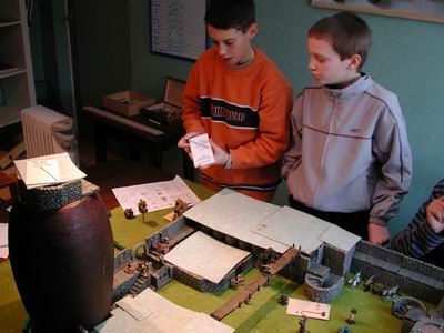 Ou bien un village pour mener une enquête. Les maisons non visitées sont recouvertes pas une plaque DF 6X6 à l'envers