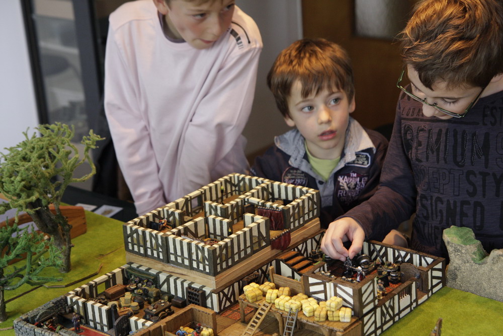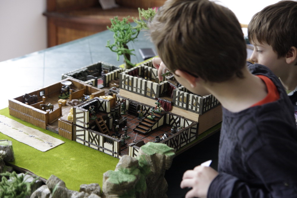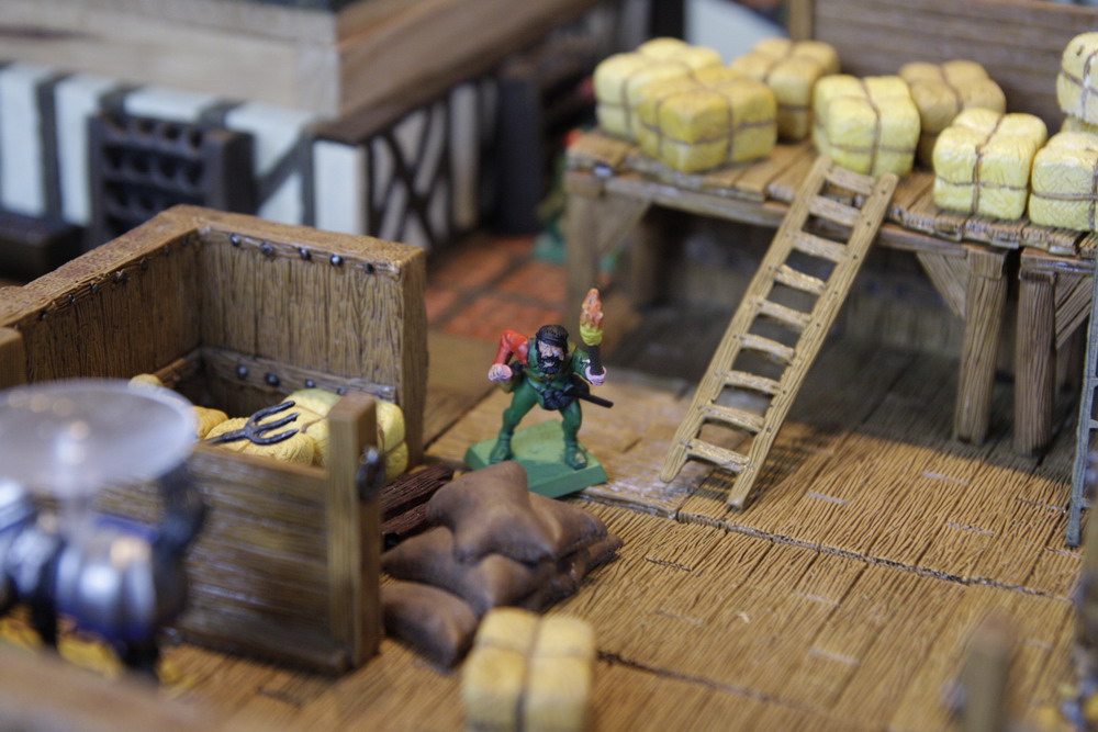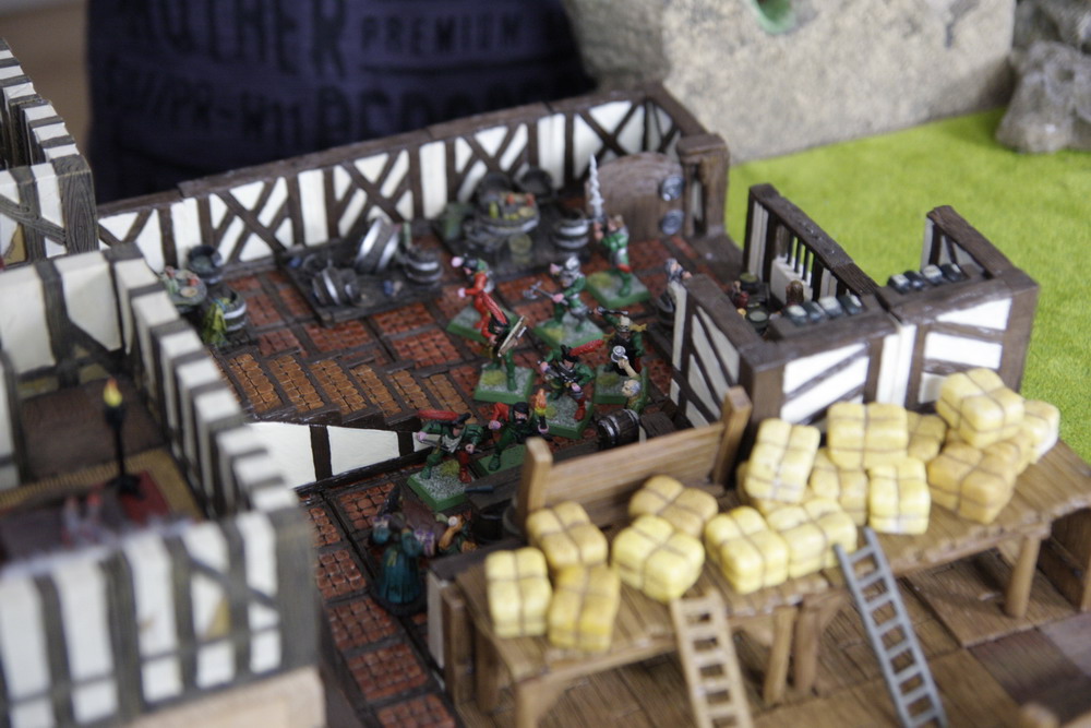 Avec sa position dominante, Lucas fait un massacre et expédie 4 soldats dans le décors, mais un soldat armé d'un arbalète caché au coin de l'écurie lui fera perdre beaucoup de pions de vie.