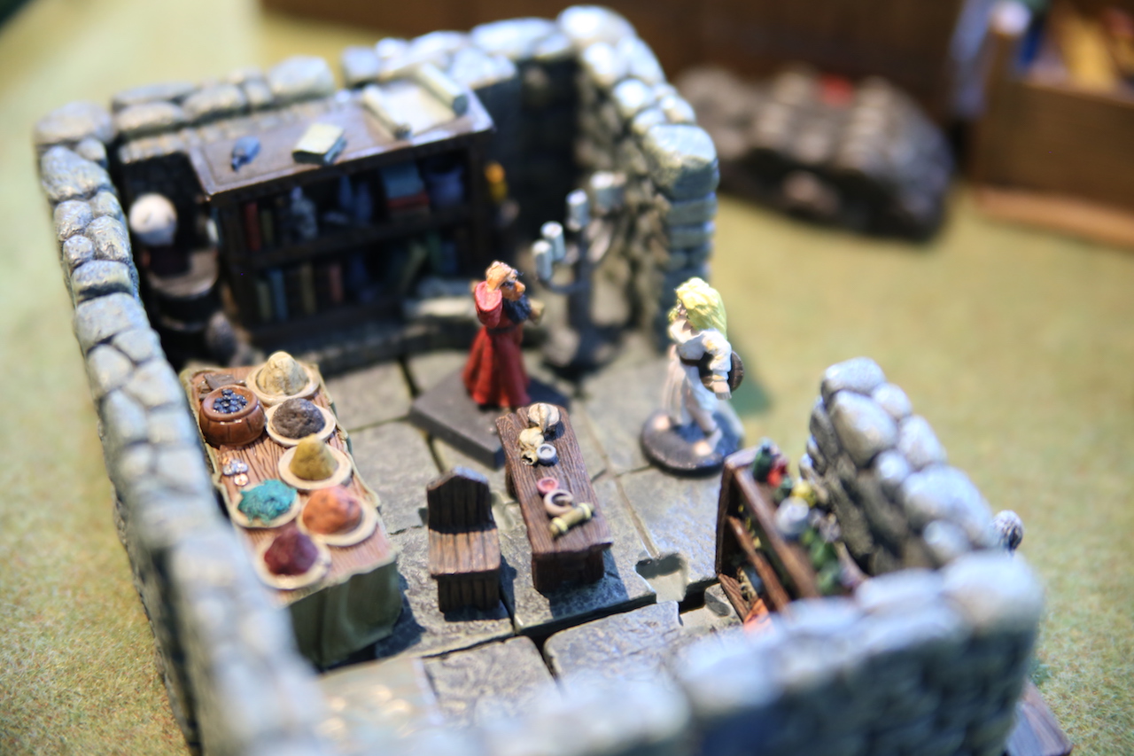 Le gobelin part à la recherche du marchand pour y remplir son sac à dos. Il renverse malheureusement une grosse caisse de craies en entrant dans une boutique parfaitement ordonnée. Le marchand passera vite sa colère et lui vendra quelques precieux objets.