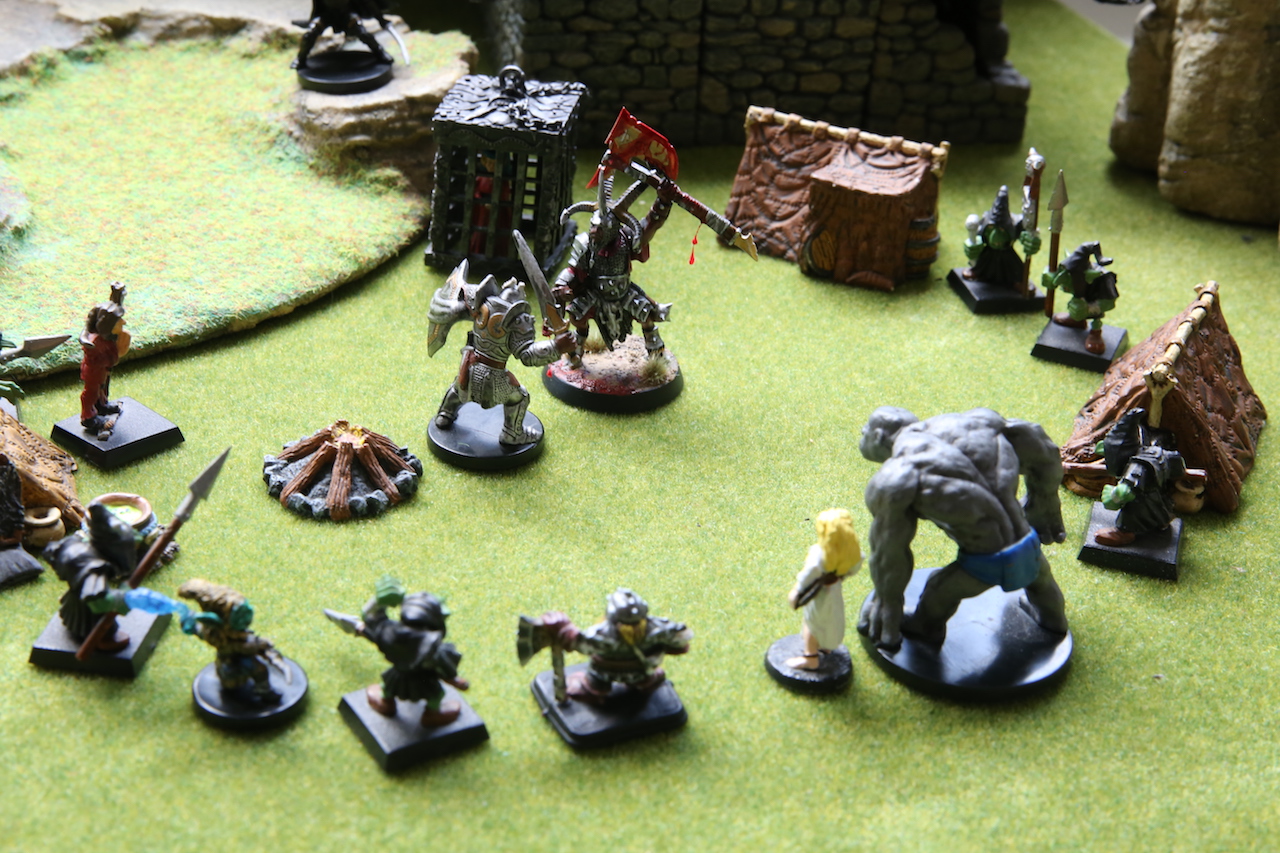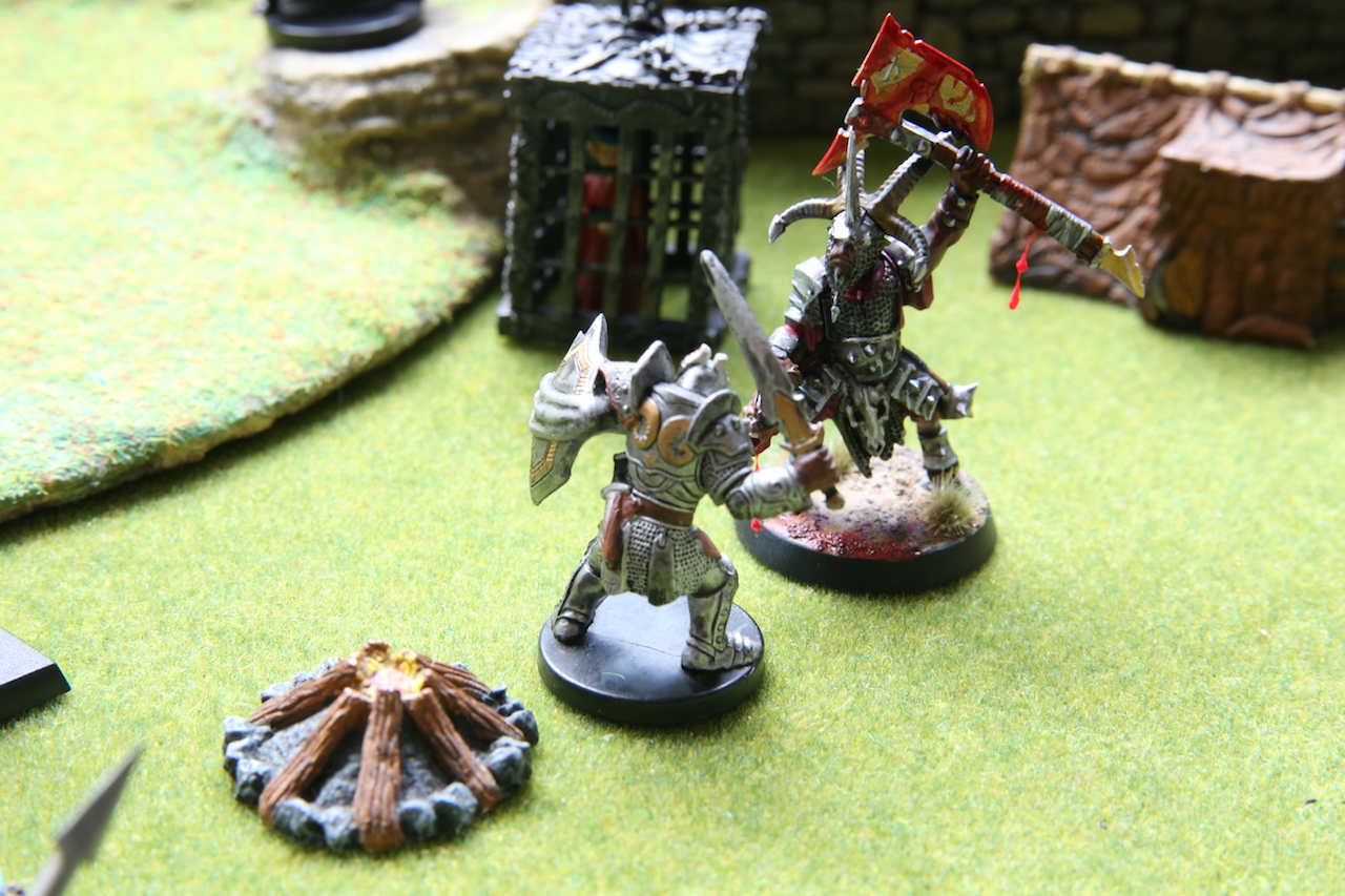 Pour convaincre les gobelins et aider la tactique du Prêtre, l'elfe a du mimer une attaque. Le monstre vert récalcitrant a donné l'alerte et le colosse aux sabots est sorti de son repaire.