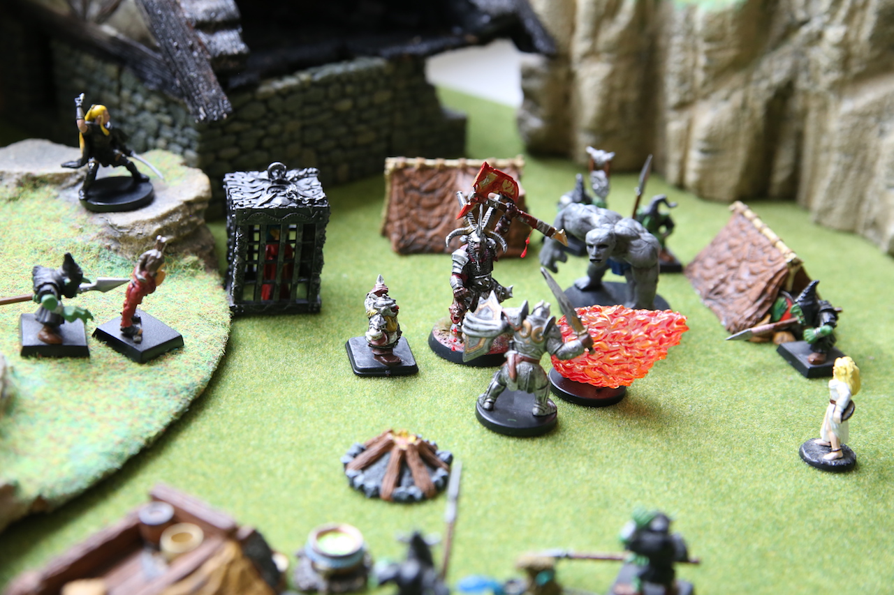 Alors qu'il fait nuit noire, la troupe fait alors cap vers les gobelins. Ils découvrent un campement où les petits monstres taquinent le jongleur qu'ils recherchent. Une femme est prisonnière dans une cage juste derrière.