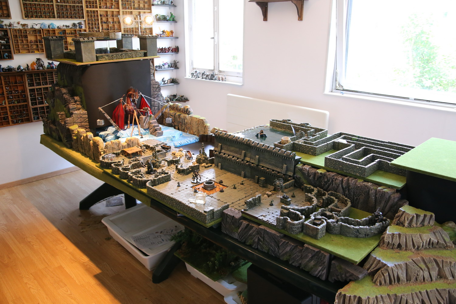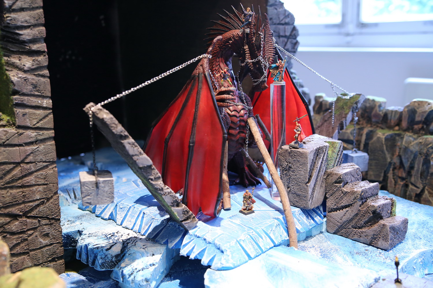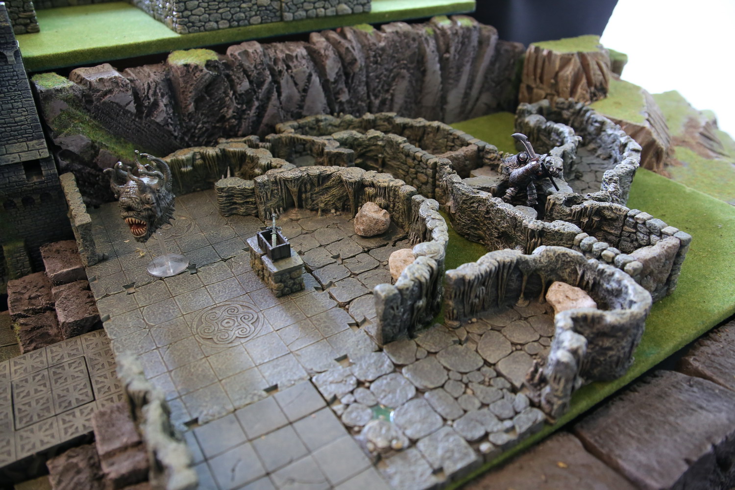 La dépouille du dragon arrive enfin au bord du gouffre. Il aura fallut des milliers d'hommes et de géants, du matériel lourd pour acheminer une telle masse sur une distance si grande. La salle circulaire verte sert depuis des semaines d'ascenseur pour faire descendre les troupes, le matériel et les monstres nécessaires à la construction du plus grand donjon jamais imaginé. Quatre tours sont montées autour de la fosse pour superviser les allers et retours.