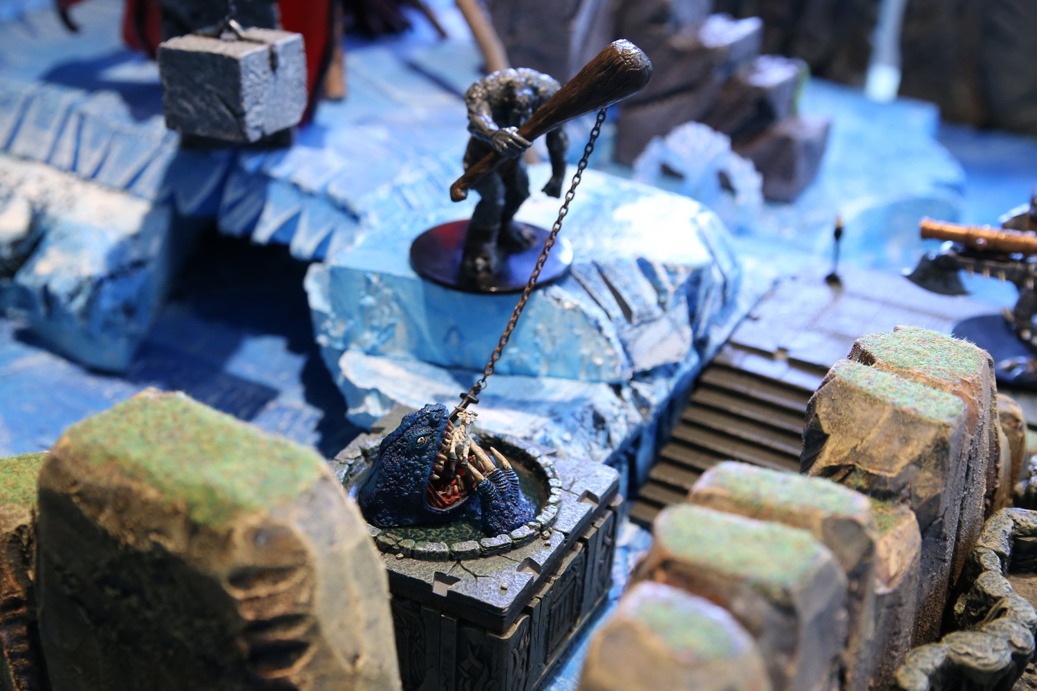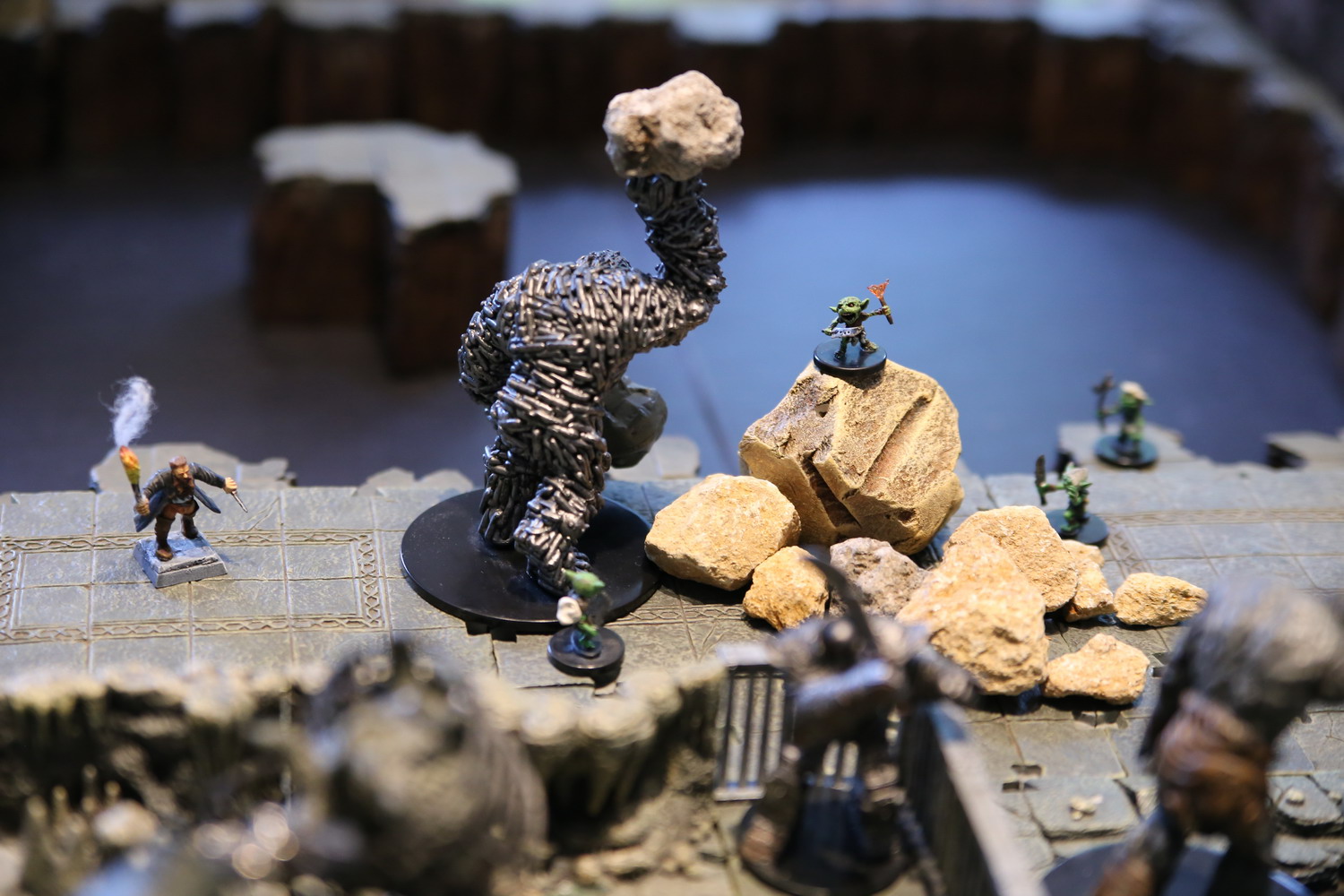 Le golem de chaines trouve directement une fonction et accompagne le golem de pierre. C'est lui le lanceur de poids qui fait résonner la grotte en balançant des rochers de plusieurs tonnes dans les contre fonds de la terre.