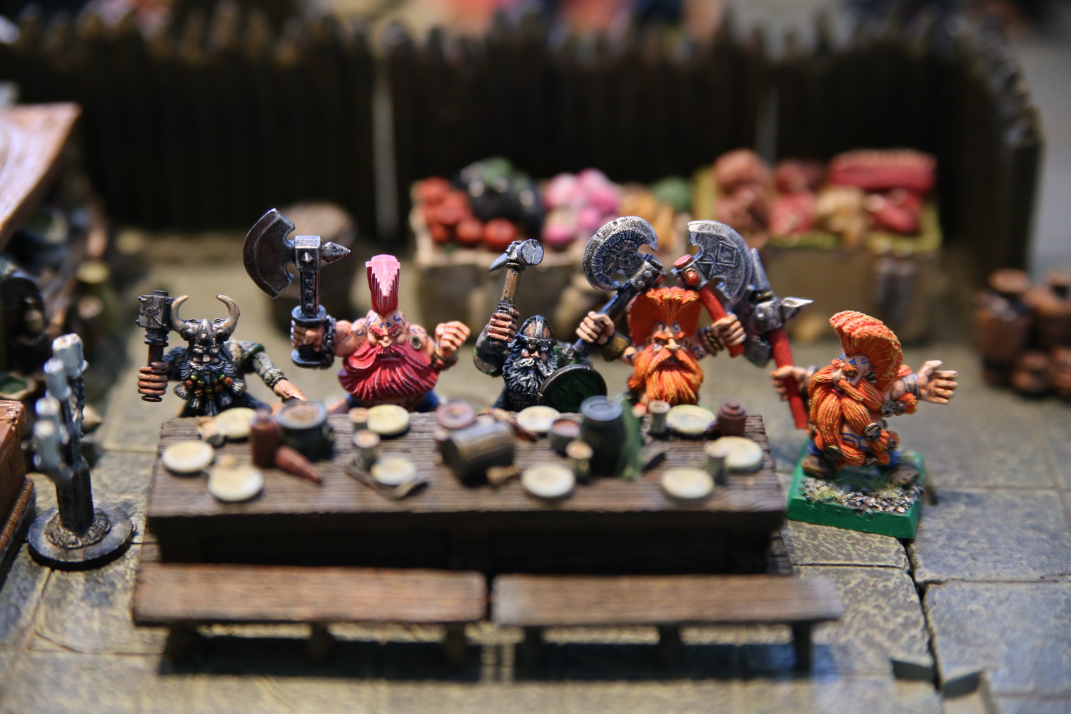5 nains font aussi partie de la communauté. Deux sculpteurs de renom et 3 féroces guerriers colorés.