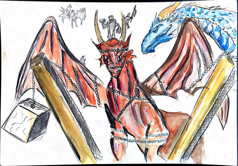Le 2d golem, quand à lui, est chargé d'enfoncer sa grande épée dans le cœur du dracosire. Cependant sa lame s'émousse vite tant les écailles sont dures a transpercer.
