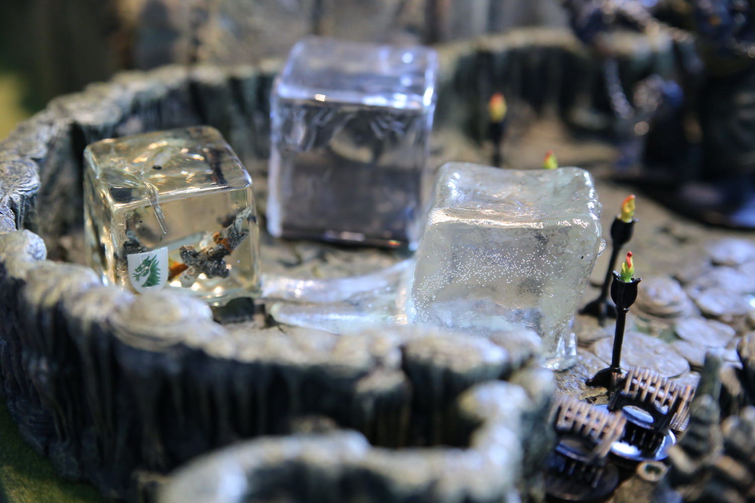 3 cubes gélatineux doivent cohabiter dans un espace réduit. Les flammes régulièrement entretenues les dissuadent de s'enfuir.