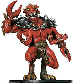 Le glabrezu est un démon aux yeux violets qui percent l’âme. La couleur de sa peau varie du rouge sombre au noir de jais. Il mesure 4,50 mètres de haut et pèse environ près de 3 tonnes. Bref c'est un morceau!!