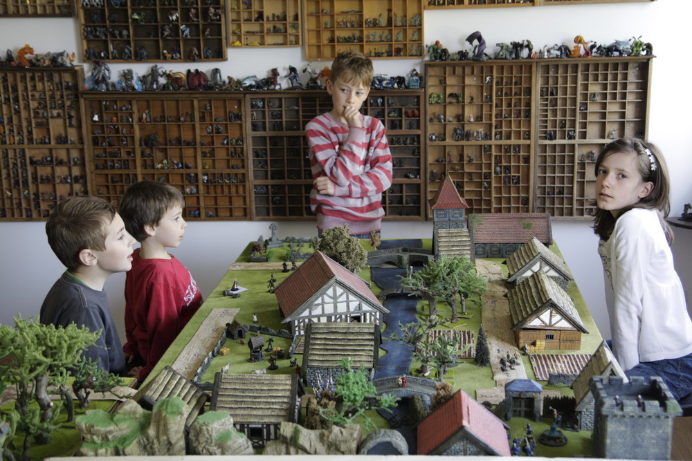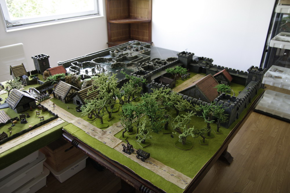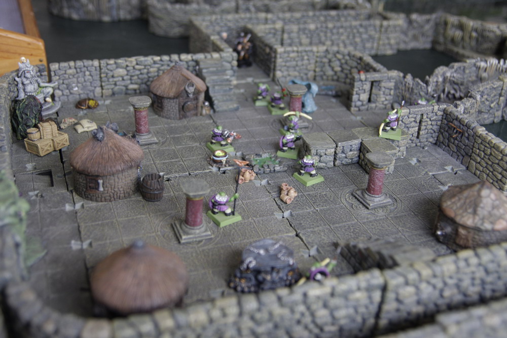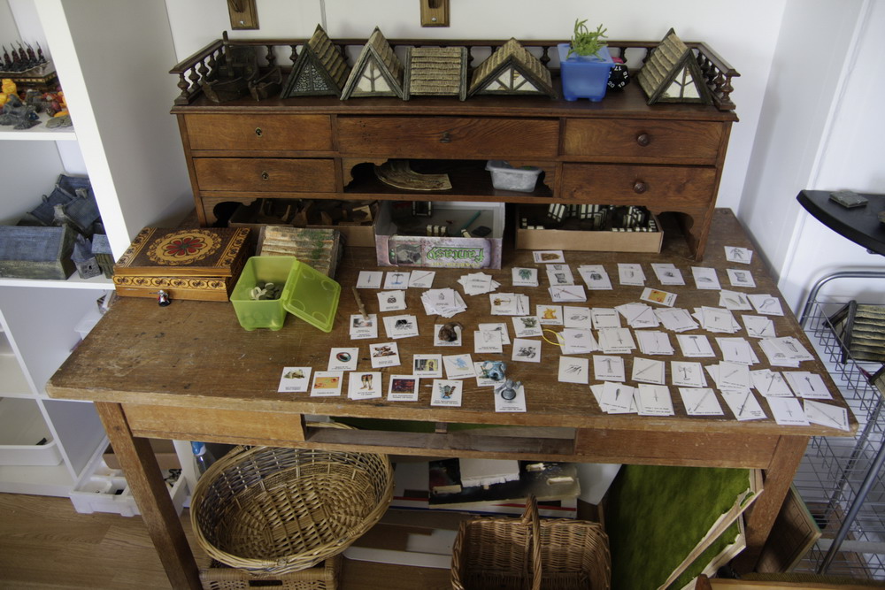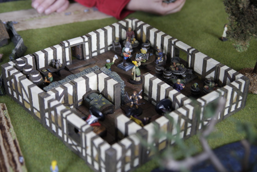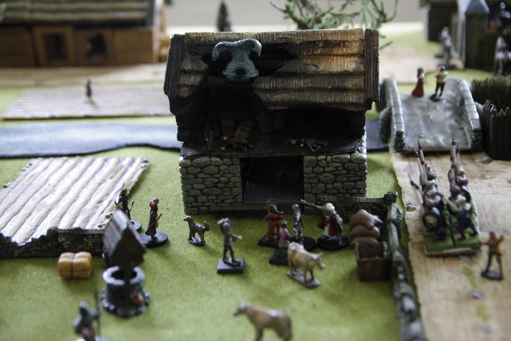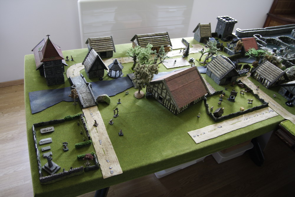 Le village est quand a lui réduit au minimum syndical afin de laisser de la place sur la table, éviter les chutes d'objets et ne proposer que des habitations qui ont un intérêt pour le jeu.
