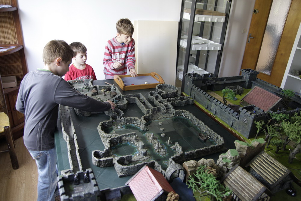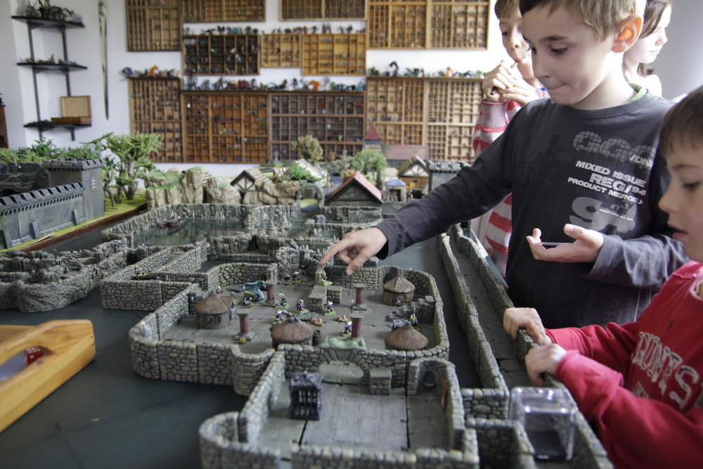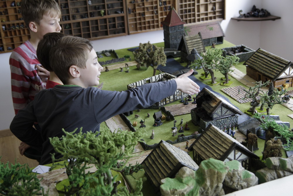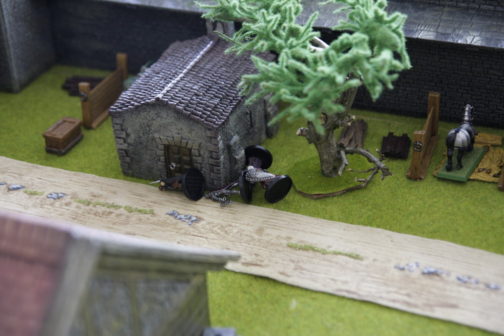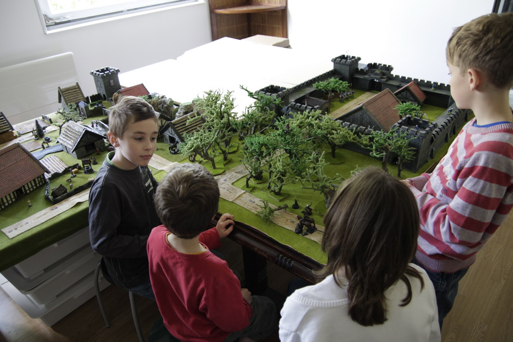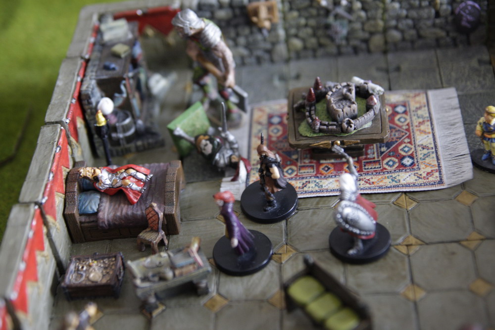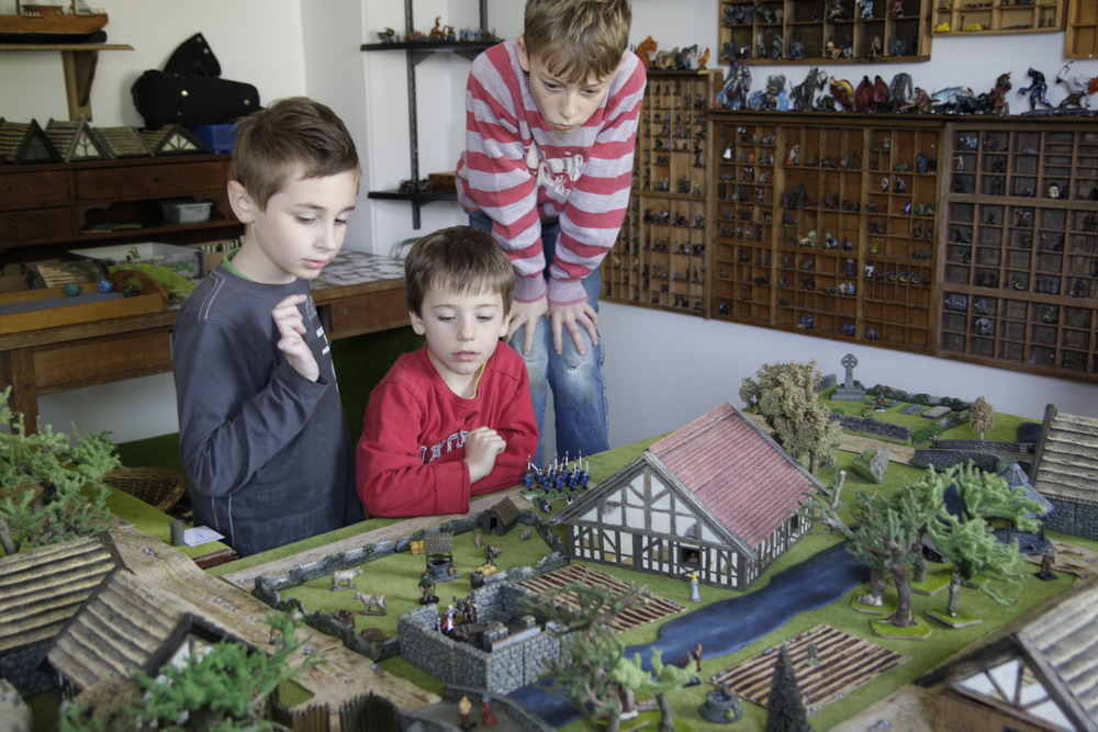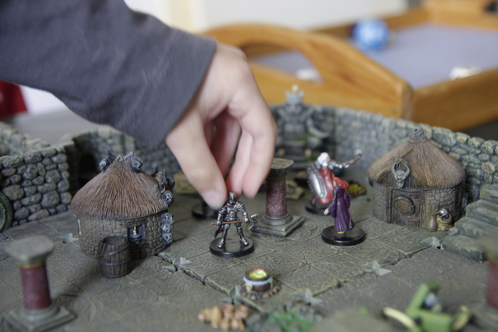 Le village est quand a lui réduit au minimum syndical afin de laisser de la place sur la table, éviter les chutes d'objets et ne proposer que des habitations qui ont un intérêt pour le jeu.
