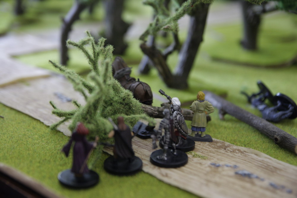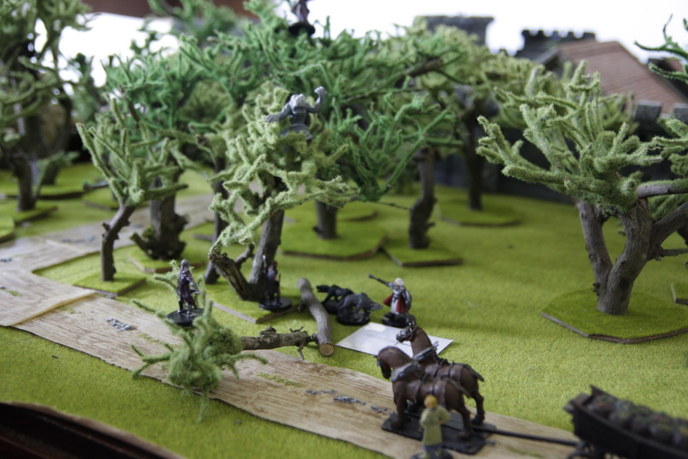Pendant la traversé de la forêt, le convoi est arrêté par un arbre couché sur le chemin et 2 loups errants en profitent pour attaquer les personnages. La magicienne perchée sur un arbre manque d'assommer le guerrier avec un sort de vent qui fait chuter une grosse branche.