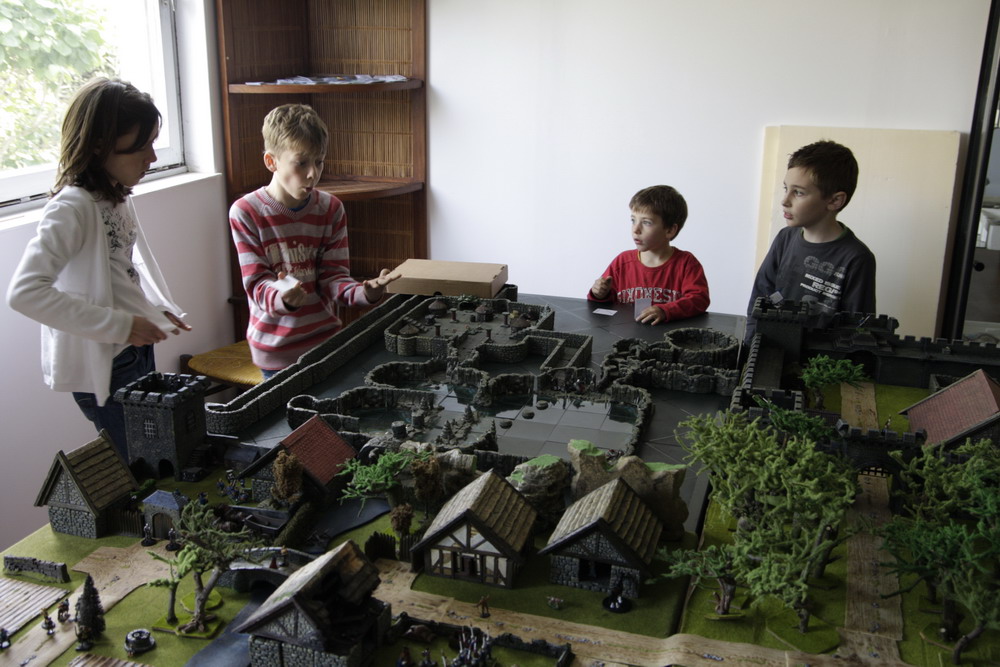 Suite à la grosse table de 9m², et pour profiter du matériel sorti, des vacances et de la présence du copain Lucas, je transforme la salle en ôtant 2 tables.