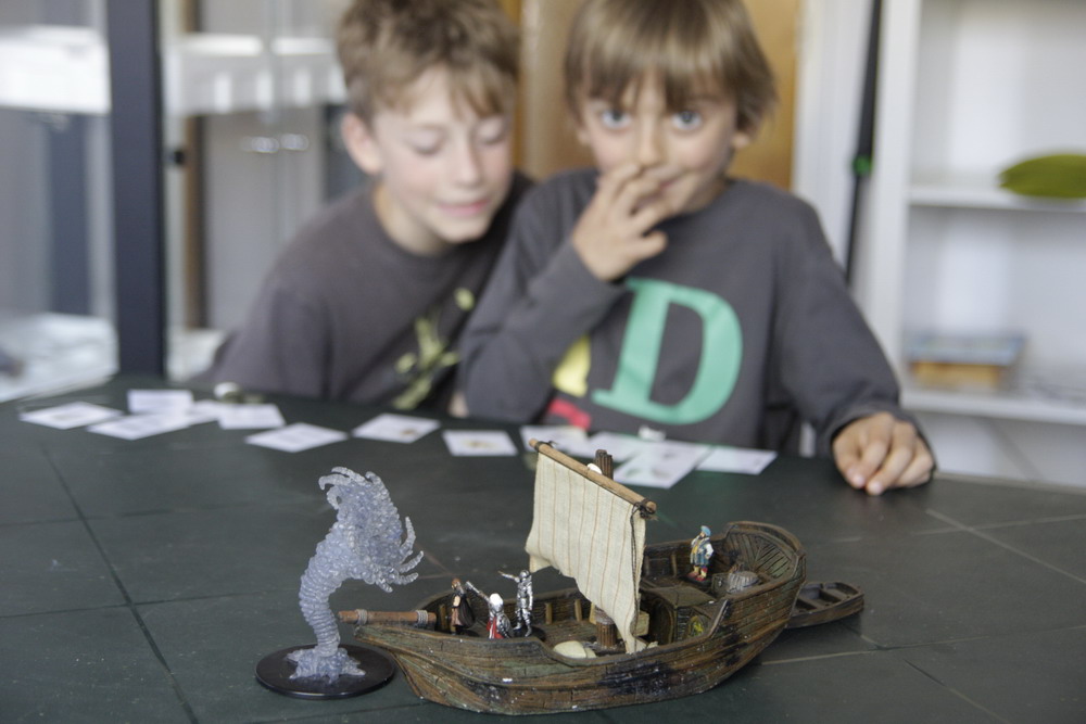 Les aventuriers ne se dégonflent pas, ils accostent avec la barque, l'attachent puis balancent un filet sur le monstre qui charge