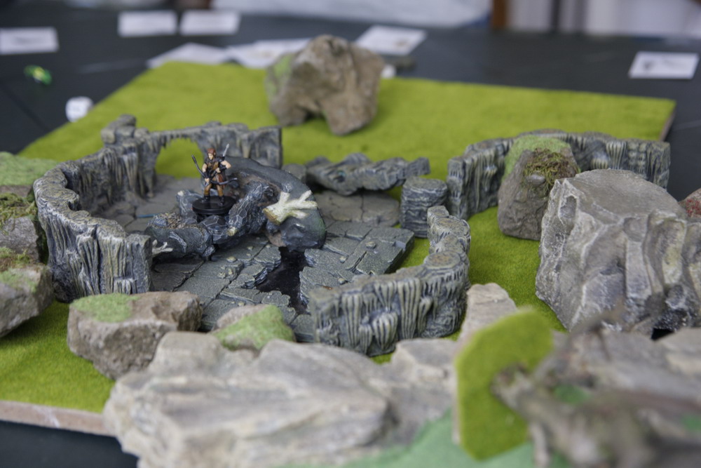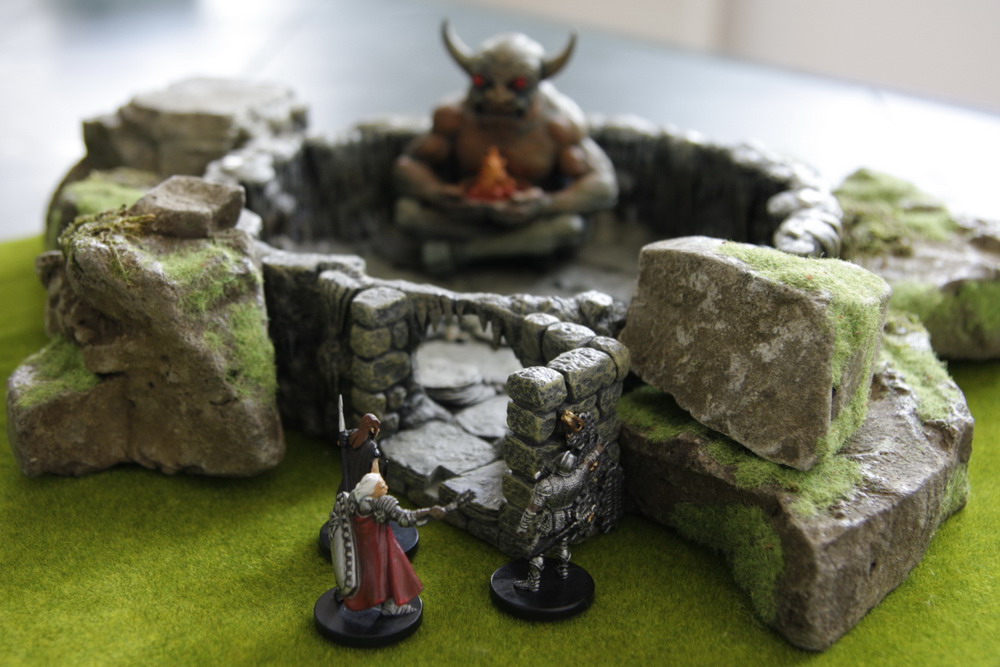 A l'intérieur, un colosse de roche porte une vasque de feu. Ces yeux rouges brillent au loin. Ce sont eux que les aventuriers sont venus chercher.