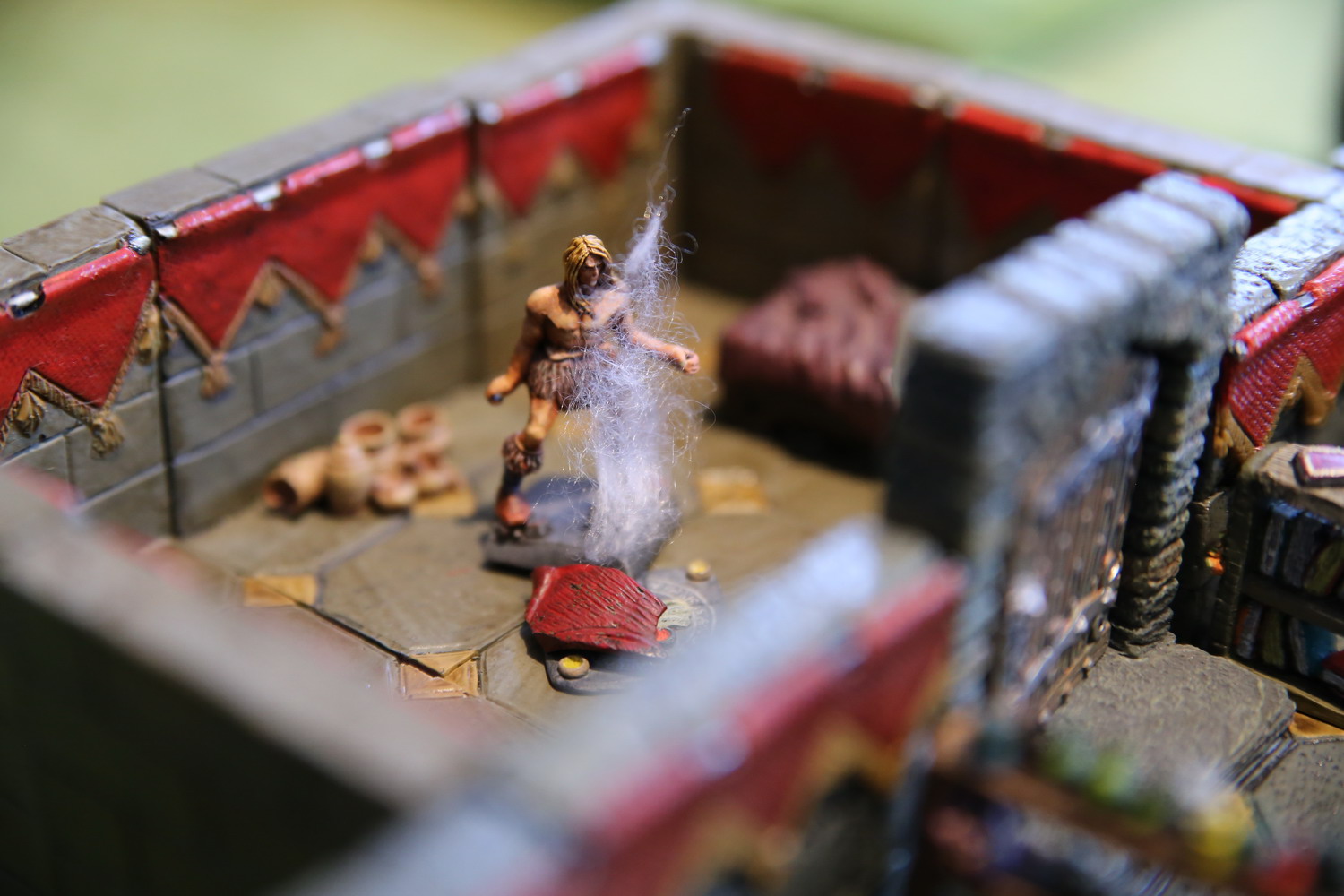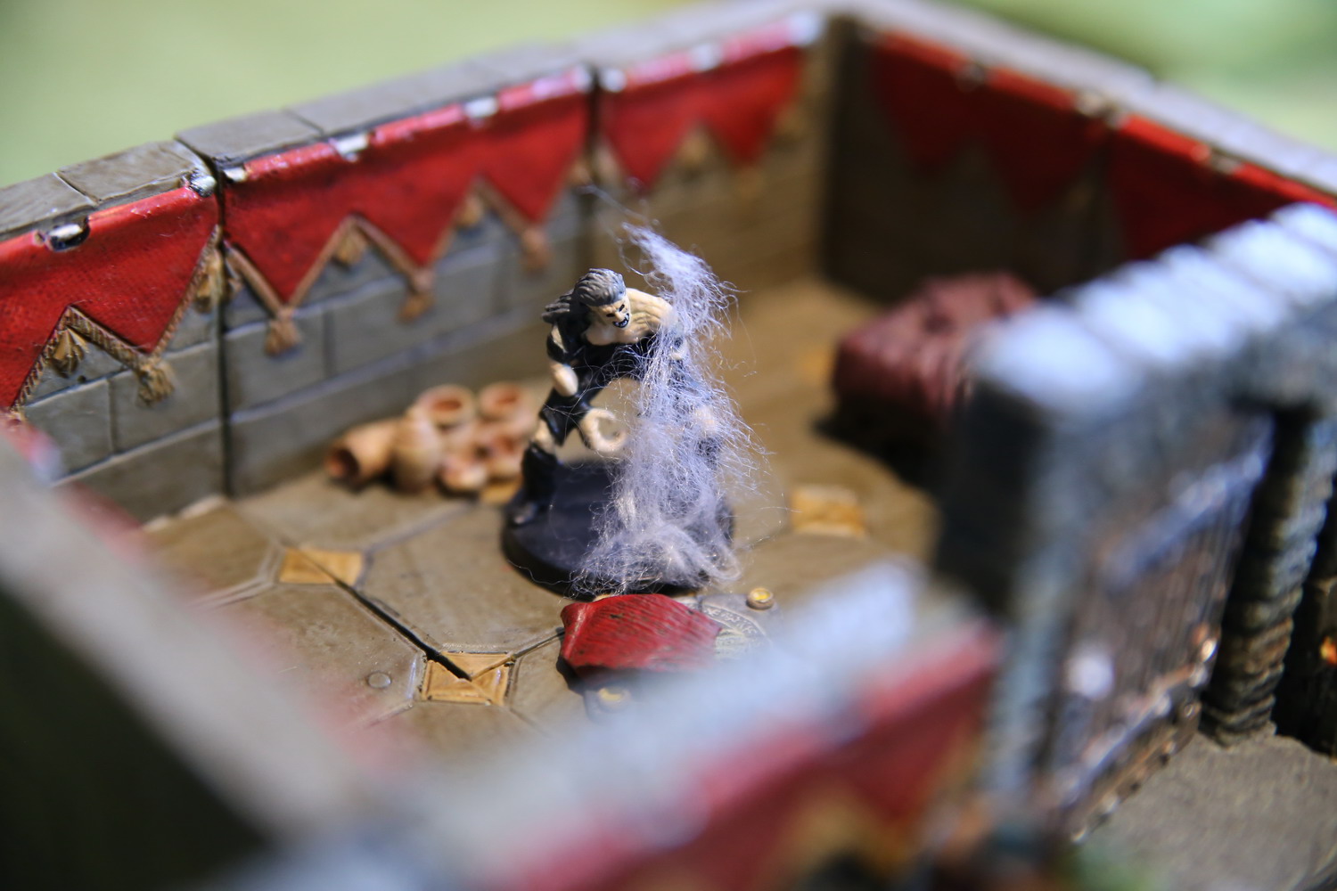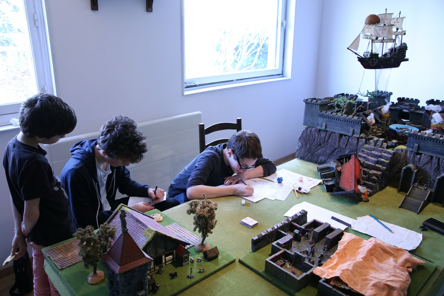 Les joueurs pendant leurs épreuves respectives. Le mage doit dessiner son golem le plus précisément possible afin de réussir son clonage