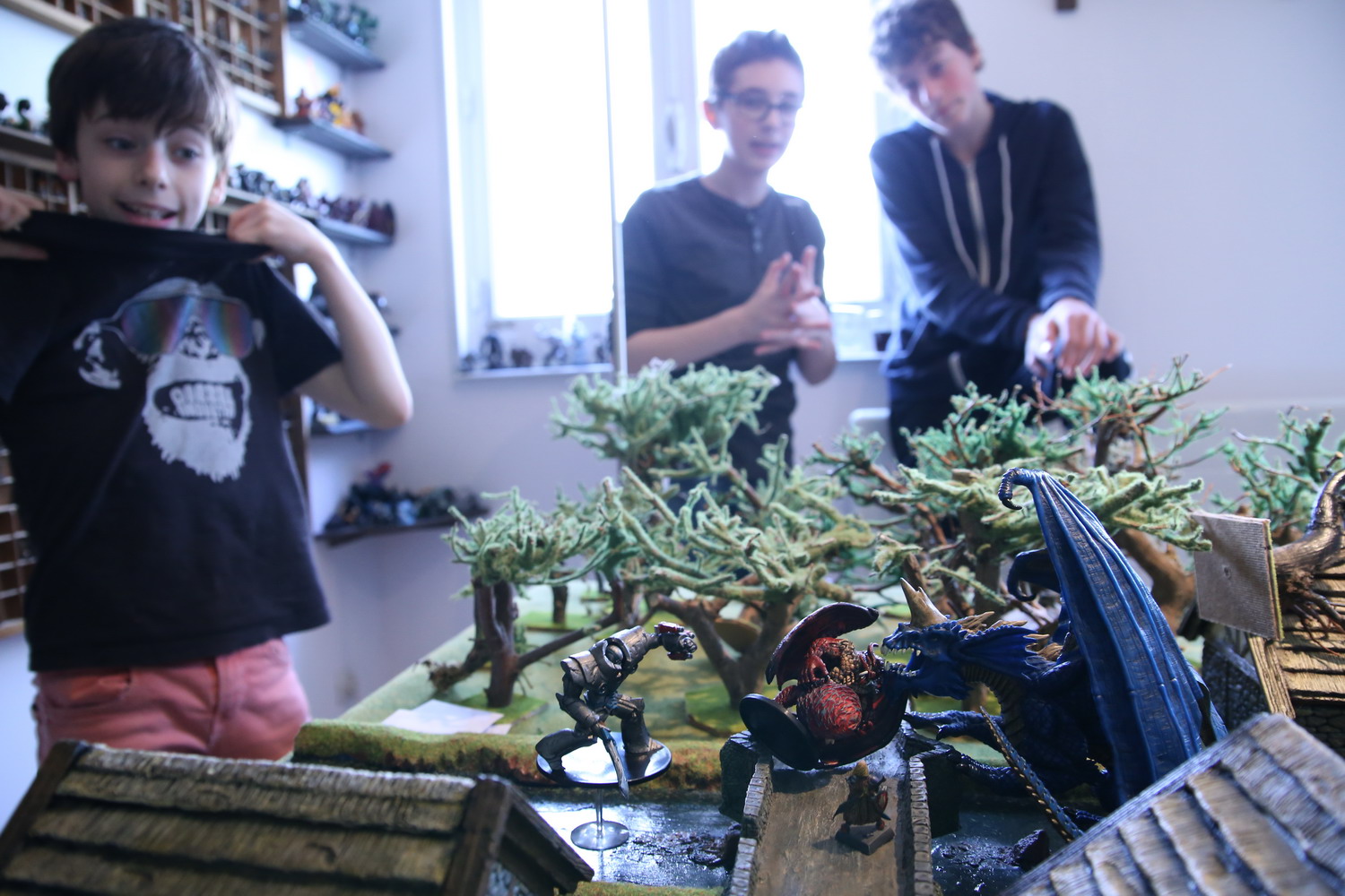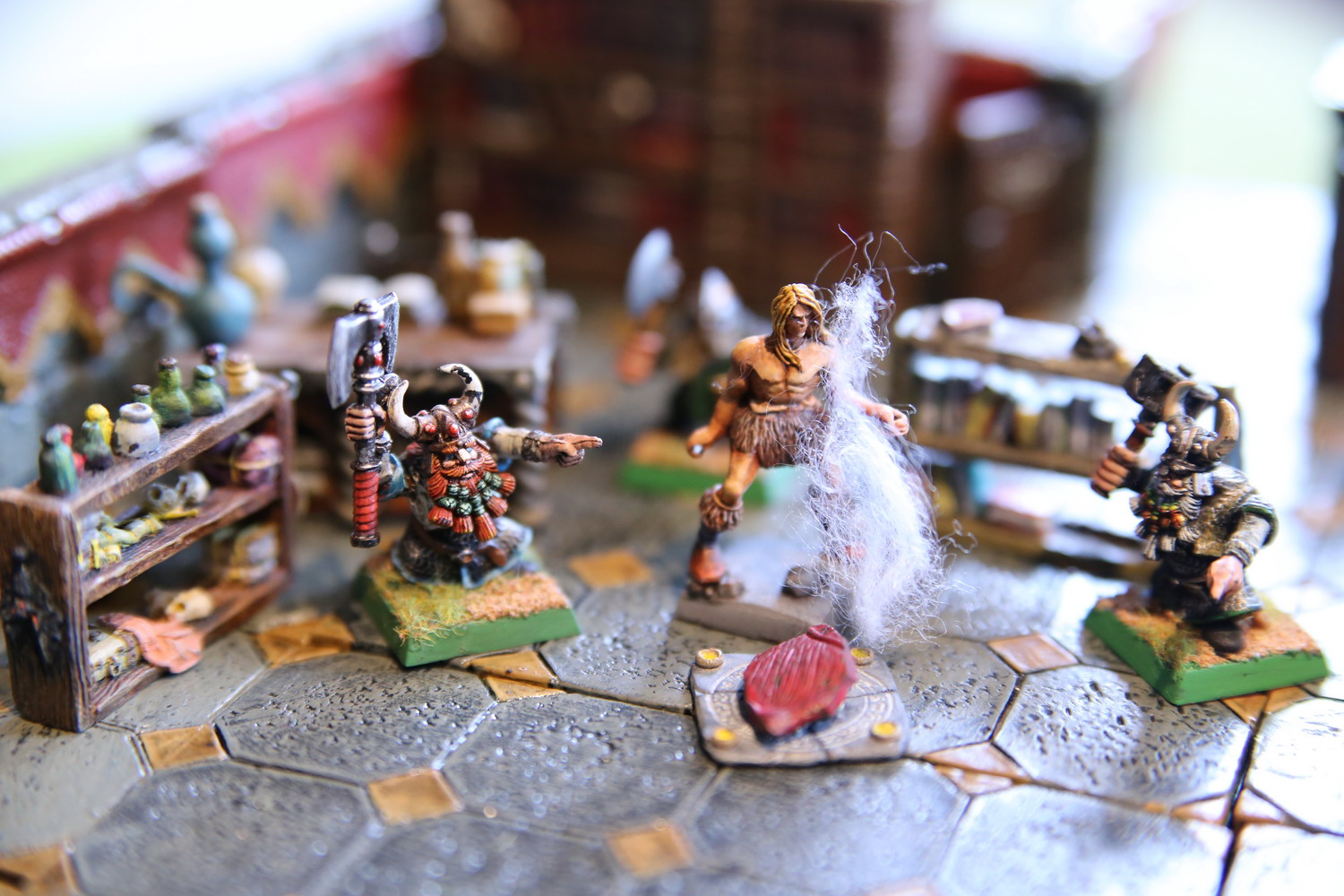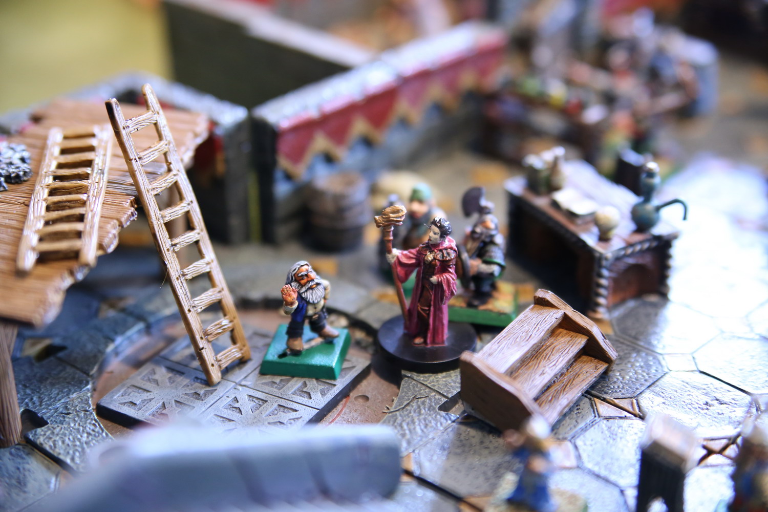 Les joueurs pendant leurs épreuves respectives. Le mage doit dessiner son golem le plus précisément possible afin de réussir son clonage