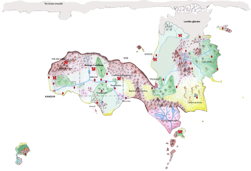 Les aventuriers constatent rapidement qu'ils se trouvaient sur une grosse île a quelques km du continent au large d'Ikrocel.