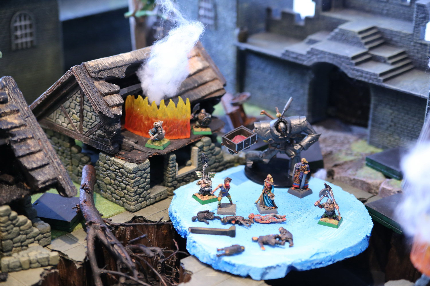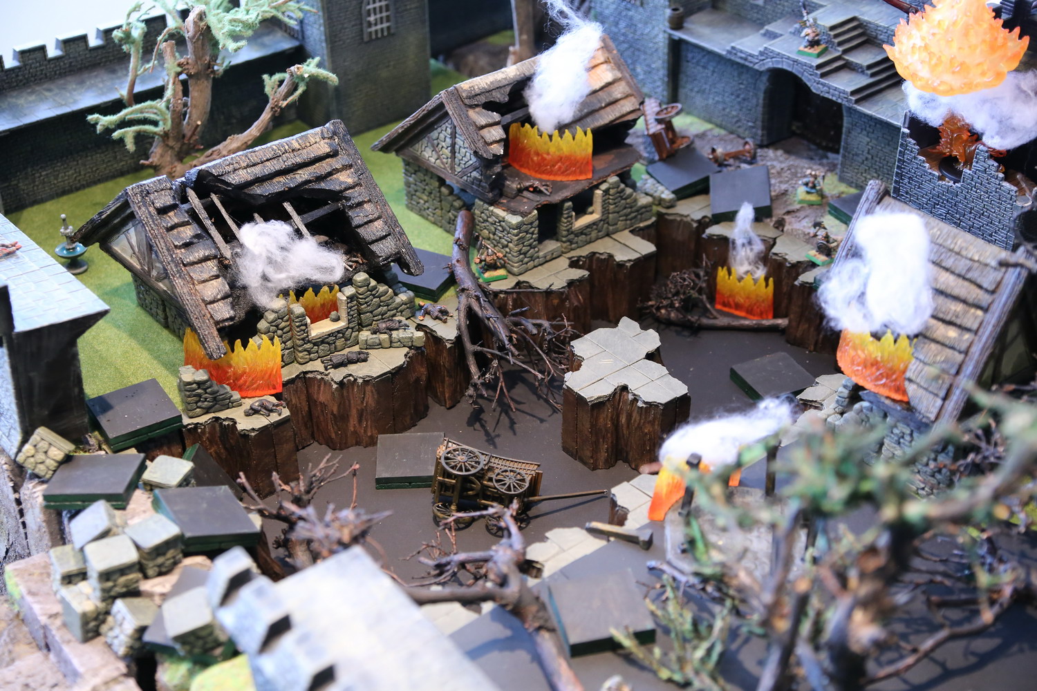 Les aventuriers constatent avec effroi les ravages du maitre rouge et ne peuvent s'empêcher de penser à leurs responsabilités dans ce nouveau cataclysme. De nombreux cadavres calcinés jonches le sols. L'odeur de viande brulée donne la nausée aux nouveaux arrivants.