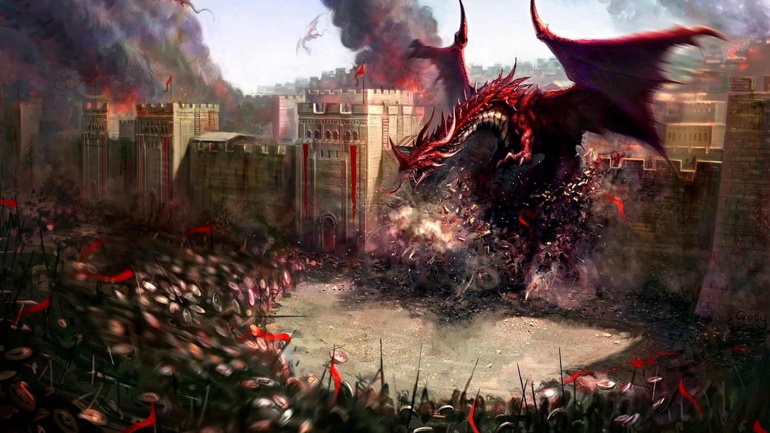 Les survivants parlent d'un dragon d'une centaine de mètres d'envergure capable de faire effondrer une tour fortifiée d'un coup d'aile, capable de creuser la terre sur plusieurs mètres de profondeur avec la violence de son souffle de feu.