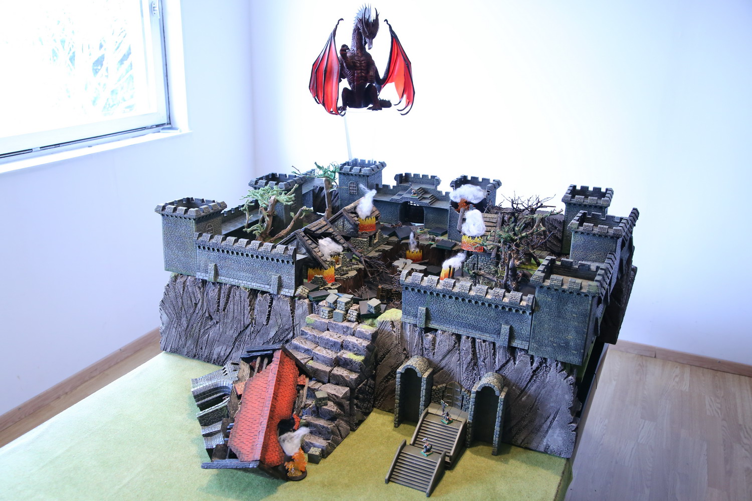 Le dragon a carrément découpé la place forte en deux. Son souffle a creusé un cratère long et profond qui divise la cité en son centre.