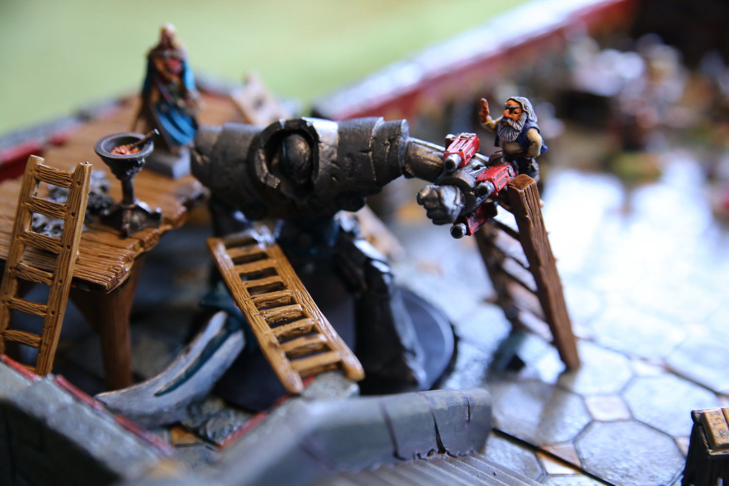 Les nains qui vivent sous la cité dans la montagne ont été épargné par le passage du monstre. Ils organisent les secours tant bien que mal. Cette place est l'une des rares où hommes et nains vivent en bonne harmonie.