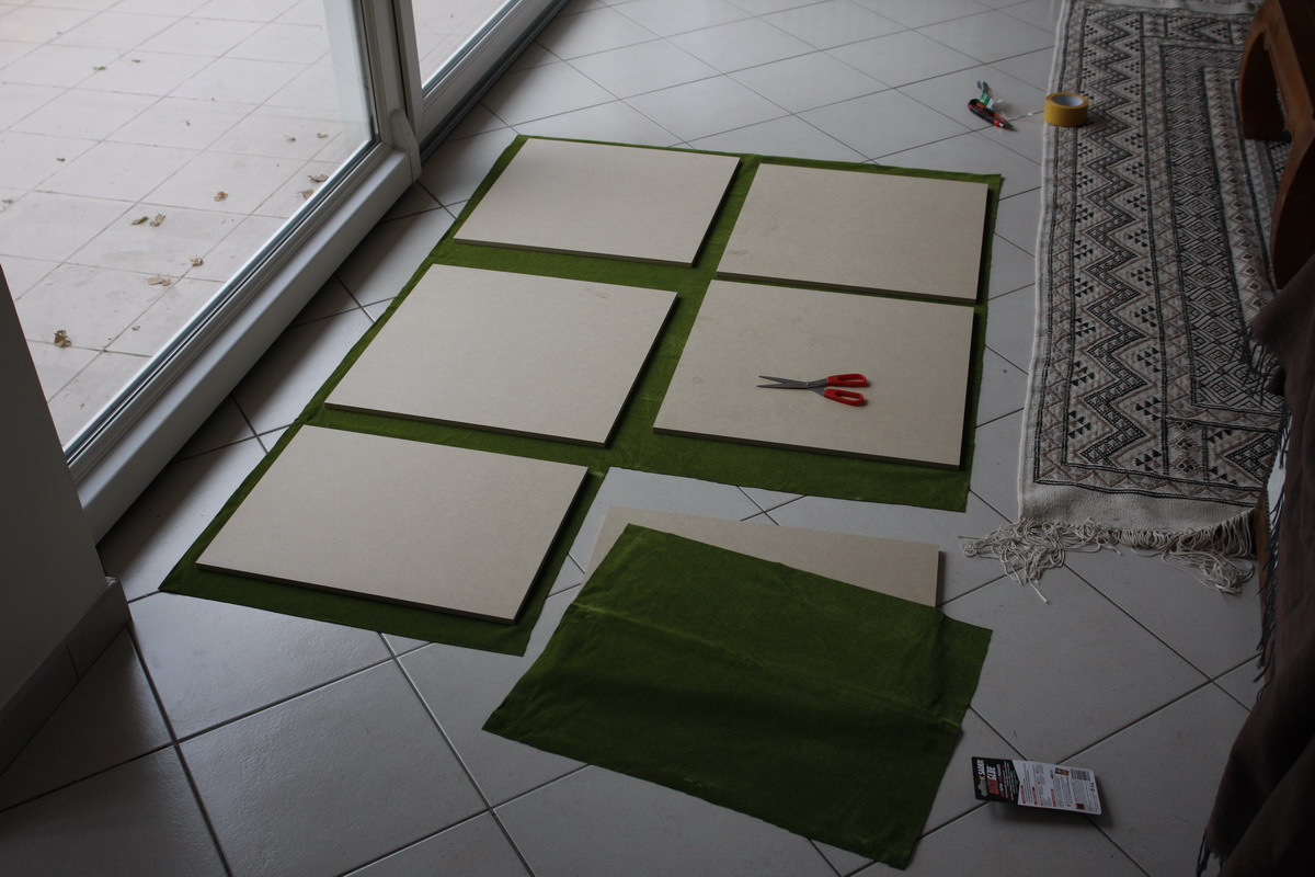 Je travaille depuis quelques années avec des planches de bois recouvertes d'un tapis d'herbe d'un coté et de bleu pour simuler l'eau de l'autre. Ces planches découpées aux bonnes dimensions ( 2 planches pour obtenir une largeur de table) permettent de multiples combinaisons et beaucoup de souplesse pour créer étages et endroits différenciés.